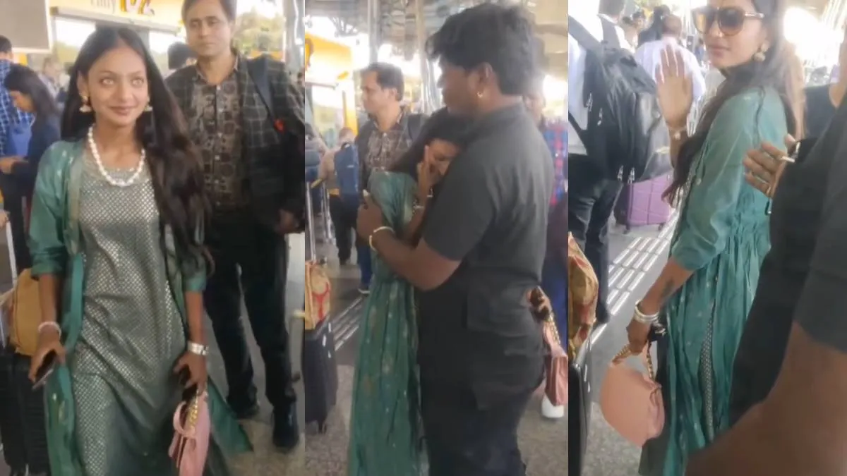 एयरपोर्ट के बाहर हरे रंग की ड्रेस पहने खड़ी मोनालिसा के साथ उनकी मां और पापा भी नजर आ रहे हैं, जो अपनी बेटी को सी ऑफ करने पहुंचे। मोनालिसा पहले तो हंसते हुए अपने पिता के पास आती हैं, उन्हें गले लगाती हैं और फिर इमोशनल हो जाती हैं। पिता के गले लगते ही मोनालिसा रोने लगती हैं और फिर आंखों में चश्मा लगाकर अपने आंसू छिपाती नजर आती हैं।