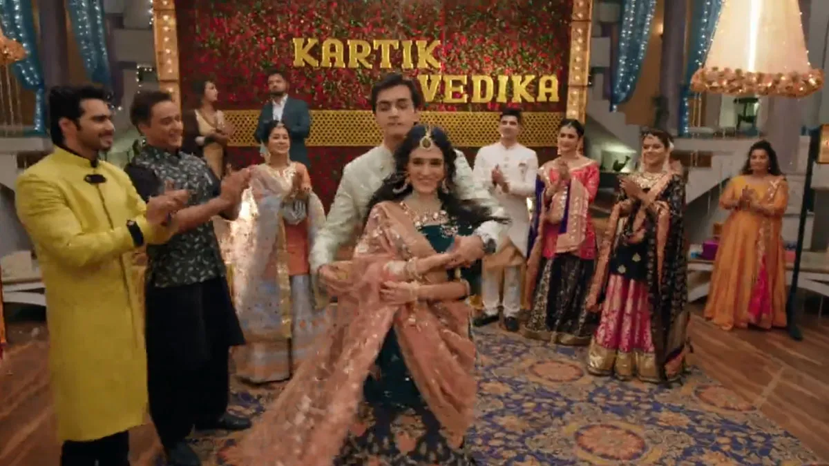 दूसरी तरफ कार्तिक और वेदिका न्यू बिगनिंग करते हैं और केक काटते हैं। वेदिका और कार्तिक 'मोरनी बनके' गाने पर डांस करते हैं। डॉक्टर पल्लवी भी संगीत सेरेमनी में पहुंच जाती है। वो वेदिका से पूछती है कि वो ज्यादा खुश नहीं लग रही कुछ हुआ है क्या? लेकिन वेदिका कहती है ऐसा कुछ भी नहीं है।