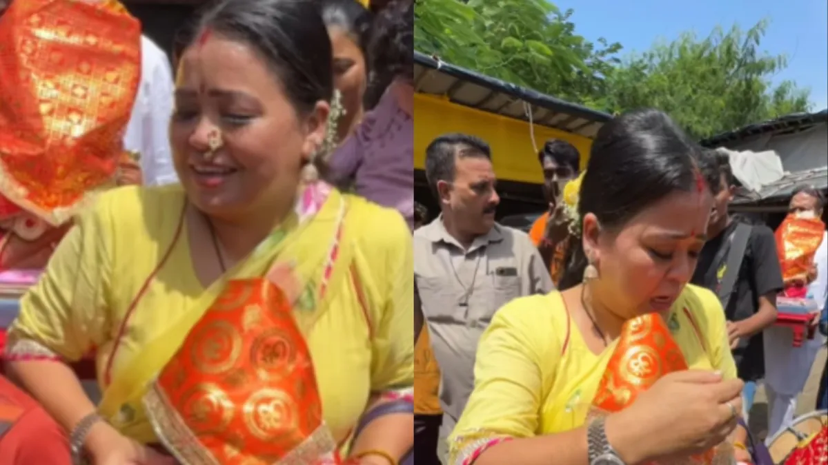 भारती सिंह के परिवार के साथ उनके कई वीडियो आए दिनों वायरल होते रहते हैं, लेकिन हाल ही में उनका एक ऐसा वीडियो सामने आया है जिसे देख उनकी तारीफ कर रहे हैं। इस वीडियो में गणपति बप्पा का वेलकम करते वक्त भारती सिंह की नाक से नथ गिर जाती है। वह एक हाश से नाथ को उठाने की कोशिश करती हैं, लेकिन गणपति बप्पा गिर न जाए इसलिए वह नाथ को वहीं छोड़कर आगे बढ़ जाती है। ये वीडियो सोशल मीडिया पर काफी वायरल हो रहा है।