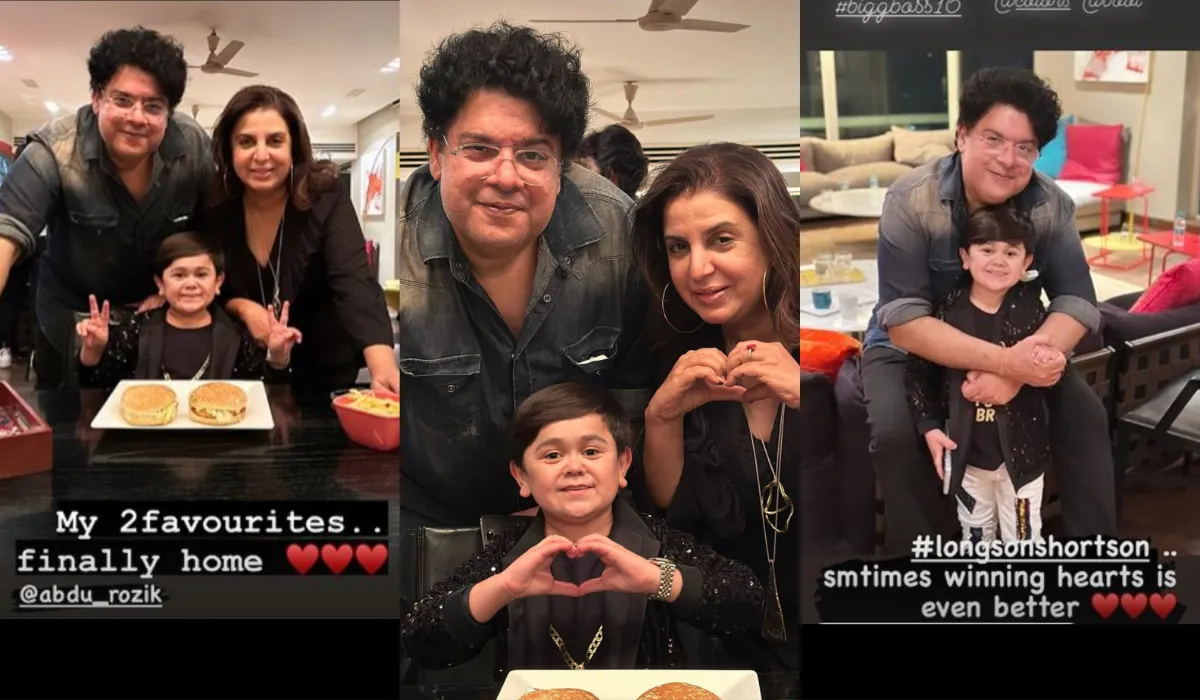 'बिग बॉस 16' से अब्दु रोजिक और साजिद खान दोनों ही अपने वर्क कमिटमेंट्स की वजह से बाहर आ गए हैं। इस शो से बाहर आने के बाद फैंस अब्दु पर प्यार बरसा रहे हैं। वहीं अब साजिद खान की बहन फराह खान ने भी उनपर खूब प्यार बरसाया है। उन्होंने कुछ फोटो शेयर की हैं, जिसमें वो भाई साजिद खान और अब्दू रोजिक के साथ बर्गर पार्टी करते हुए नजर आ रही हैं।