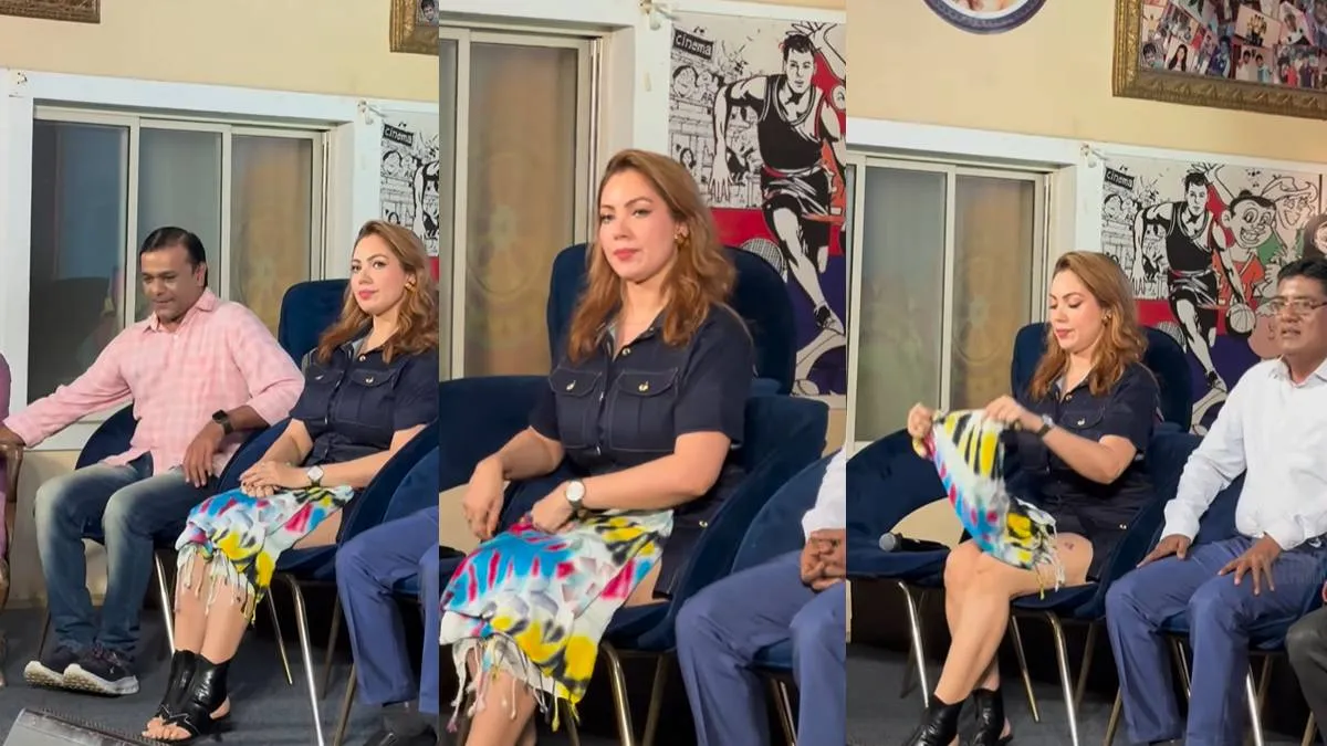 दरअसल सामने आए इस वीडियो में आप देख सकते हैं कि मुनमुन दत्ता डेनिम शॉर्ट ड्रेस पहने मंच पर आती हैं। इस दौरान उनके साथ ऑन स्क्रीन पति अय्यर भी नजर आते हैं। एक्ट्रेस का पूरा आउटफिट काफी स्टाइलिश है। इस वुक को उन्होंने बूट स्टाइल हील के साथ कैरी किया। इस वक्त जब एक्ट्रेस मंच पर पहुंचती हैं तो उनके हाथ में एक मल्टी कलर स्टोल नजर आता है। इसे हाथ में थामे हुए ही वो नीचे मौजूद लोगों को नमस्कार करती हैं और फिर कुर्सी पर बैठ जाती है। जैसे ही एक्ट्रेस कुर्सी पर बैठती हैं, वो कुछ ऐसा करने लगती है, जिसे देखने के बाद कई लोग हैरत में हैं तो कई लोग उन्हें ट्रोल करने लगे हैं।