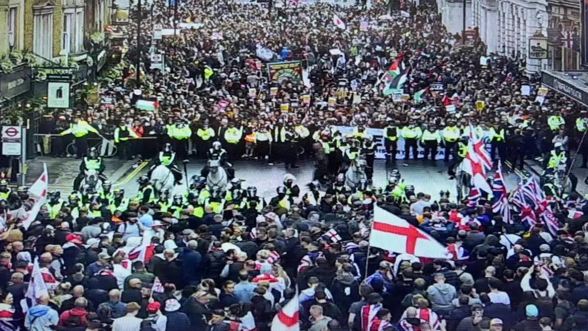 लंदन की सड़क पर हुए एंटी-इमिग्रेशन मार्च में लाखों लोगों की भीड़ हुई, जिसका नेतृत्व टॉमी रॉबिन्सन ने किया। ये प्रदर्शन अभिव्यक्ति की स्वतंत्रता के समर्थन में किया गया।