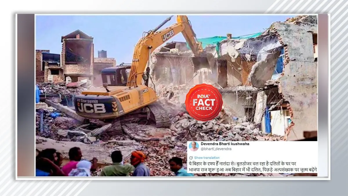 Fact Check: सोशल मीडिया पर इन दिनों एक तस्वीर तेजी से शेयर की जा रही है, जिसमें दावा किया जा रहा है कि बिहार में नई सरकार (भाजपा राज) बनने के बाद नालंदा जिले में दलित समुदाय के घरों पर बुलडोजर चलाया जा रहा है। यूजर्स इस तस्वीर को शेयर करते हुए राजनीतिक और भ्रामक टिप्पणियां कर रहे हैं।