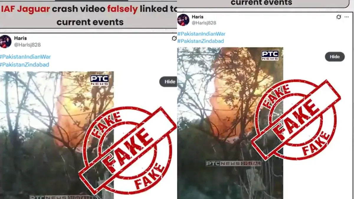 भारतीय सेना की तरफ से ऑपरेशन सिंदूर के जरिए पाकिस्तान और पीओके में स्थित 9 आतंकी अड्डों को तबाह किए जाने के बाद से पाकिस्तानी सेना की बौखलाहट देखने को मिल रही है, जिसमें उनकी तरफ से लगातार एक तरफ से जहां बॉर्डर पर सीजफायर का उल्लंघन किया जा रहा है तो वहीं दूसरी तरफ ड्रोन्स और मिसाइल से हमले की कोशिश की जा रही है जिसे अब तक पूरी तरह से भारतीय सेना ने नाकाम कर दिया है। वहीं इसी बीच सोशल मीडिया पर भी पाकिस्तान की तरफ से कई फर्जी वीडियो पोस्ट किए जा रहे हैं, जिसमें एक वीडियो जो वायरल हो रहा है उसमें भारतीय एयरफोर्स के विमान के दुर्घटना का है जो पूरी तरह से झूठा है।