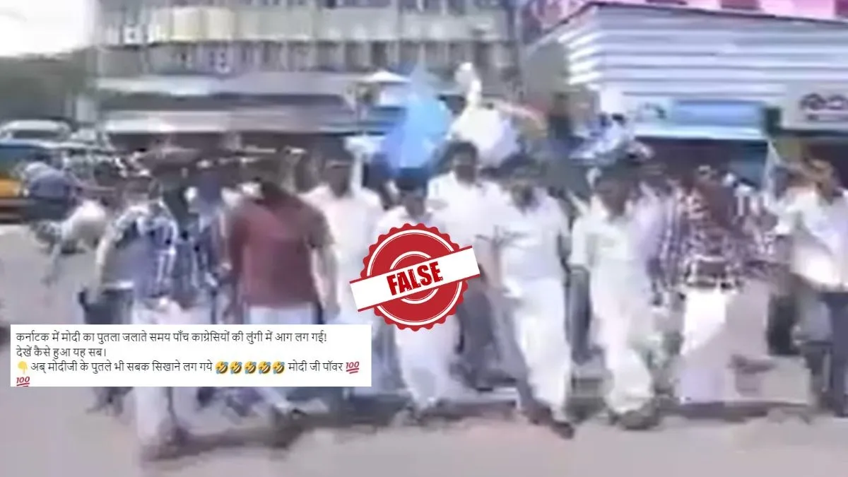 सोशल मीडिया पर एक वीडियो को शेयर करते हुए दावा किया जा रहा है कि कर्नाटक में पीएम मोदी का पुतला जलाते समय कांग्रेस कार्यकर्ता ख़ुद आग में फंस गए। हालांकि, फैक्ट चेक में ये दावा गलत साबित हुआ है।