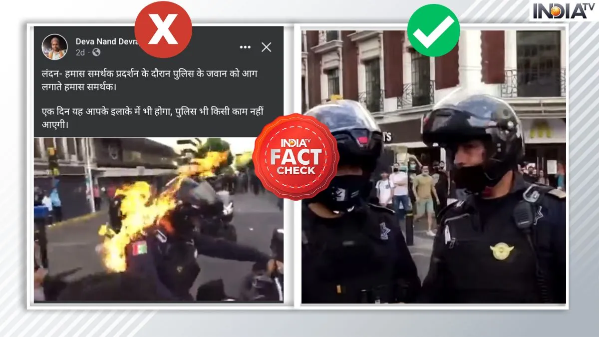 इंटरनेट और सोशल मीडिया के दौर में फेक न्यूज भी कदम से कदम मिलाकर चलते हैं। अगर कोई बड़ी घटना हो तो ऐसे समय में उससे जुड़े फेक न्यूज तो मानों भर-भरकर वायरल होने लगते हैं। इन भ्रामक खबरों को इस तरीके के कंटेंट और तस्वीरों व वीडियो के माध्यम से पेश किया जाता है कि आम यूजर्स तुरंत ही इसे सच मान लेते हैं और आगे शेयर भी कर देते हैं। इन्हीं फेक न्यूज से आपको सावधान करने के लिए हम लेकर आते हैं India Tv Fact Check। फेक न्यूज का ताजा मामला निकलकर आया है इजरायल-हमास के बीच जारी युद्ध से। जहां एक वीडियो को शेयर करते हुए दावा किया जा रहा है कि हमास के समर्थकों ने लंदन में पुलिस जवान को आग लगा दी है। आइए करते हैं इस वायरल दावे का फैक्ट चेक।