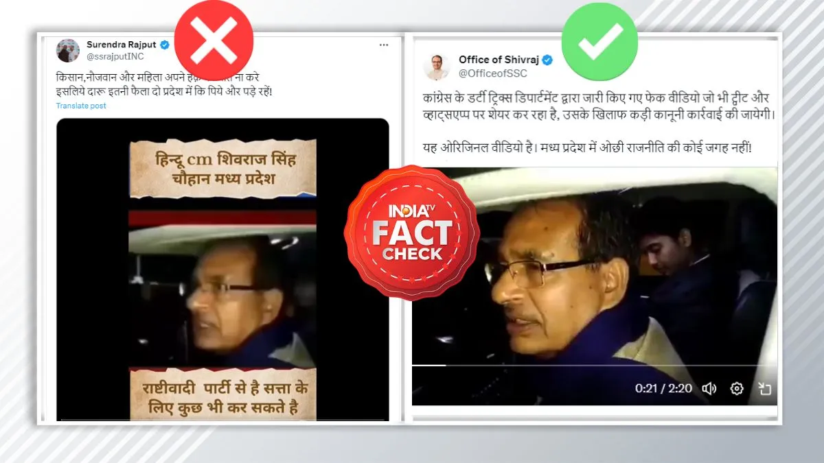 India TV Fact Check: मध्य प्रदेश में चुनावी माहौल है और ऐसे में नेताओं के कई सारे नए-पुराने और विवादित बयान बयान सोशल मीडिया पर लगातार शेयर किए जा रहे हैं। ऐसा ही एक बयान मध्य प्रदेश के मुख्यमंत्री शिवराज सिंह चौहान का वायरल हो रहा है। इस वीडियो के साथ दावा किया जा रहा है कि वह आबकारी विभाग पर भड़कते हुए कह रहे हैं कि जनता तमाम मुद्दों की बात ना करे इसलिए पूरे प्रदेश में शराब इतनी फैला दो कि लोग पिएं और पड़े रहें। लेकिन जब हमने इस वीडियो का फैक्ट चेक किया तो ये दावा पूरी तरह से झूठा निकला।