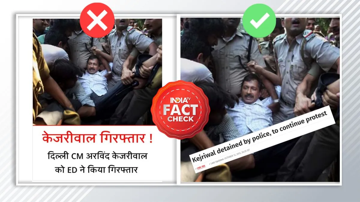 India TV Fact Check: दिल्ली के मुख्यमंत्री अरविंद केजरीवाल को ईडी ने शराब नीति घोटाले में गिरफ्तार कर लिया है। केजरीवाल की गिरफ्तारी के बाद सोशल मीडिया पर कई तरह का भ्रामक और फर्जी कंटेट शेयर किया जा रहा है। इसी तरह की एक तस्वीरें हमारे सामने आई जिसमें अरविंद केजरीवाल को पुलिस वाले उठाकर ले जा रहे हैं। इस फोटो को ऐसे दिखाया जा रहा है कि अरविंद केजरीवाल को पुलिस घसीटकर लेकर गई। लेकिन हमारी पड़ताल में ये सामने आया कि वायरल तस्वीरें करीब एक दशक पुरानी हैं।
