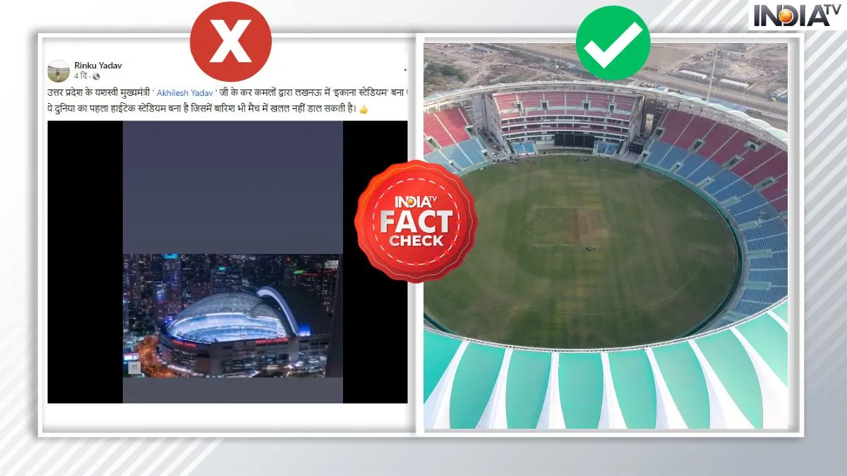India Tv Fact Check: इंटरनेट और सोशल मीडिया के इस दौर में आप तक जितनी तेज खबरें पहुंचती हैं, उतनी ही तेजी से भ्रामक खबरों का भी प्रसार होता है। आम यूजर्स इन भ्रामक खबरों का आसानी से शिकार भी हो जाते हैं। ऐसी ही भ्रामक खबरों और फेक न्यूज से आपको बचाने के लिए हम लेकर आते हैं India Tv Fact Check। फेक न्यूज का ताजा मामला जुड़ा है भारत में हो वनडे विश्व कप से जुड़े एक स्टेडियम से, जिसमें लखनऊ के इकाना स्टेडियम के नाम पर किसी अन्य स्टेडियम का वीडियो शेयर किया जा रहा है। हालांकि, जब हमने इस वीडियो के बारे में रिसर्ट किया तो मामला कुछ और ही सामने आया। आइए करते हैं इस वायरल वीडियो और दावे का फैक्ट चेक।