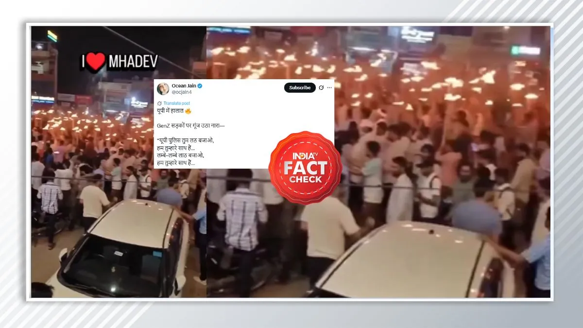 Fact Check: इन दिनों सोशल मीडिया पर किसी भी बात को गलत दावे के साथ पेश करना बहुत ही आसान है। हालांकि इसका बहुत ज्यादा नुकसान भी होता है और ये खतरनाक है। फेक खबरें सोशल मीडिया पर तेजी से वायरल हो जाती हैं। इन्हीं फेक न्यूज से आपको सावधान करने के लिए हम लेकर आते हैं India TV फैक्ट चेक। सोशल मीडिया पर इन दिनों एक पोस्ट काफी तेजी से वायरल हो रही है, जिसमें यह दावा किया जा रहा है कि 'यूपी के Gen-Z सीएम योगी और महादेव के समर्थन में सड़कों पर मशाल जुलूस निकाल रहे हैं।'