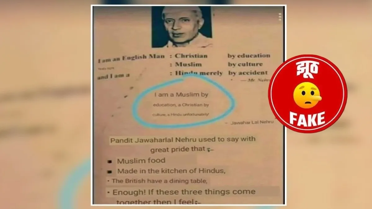 Claim Review: दावा किया जा रहा है कि जवाहरलाल नेहरू ने कहा था कि वे शिक्षा से ईसाई, संस्कृति से मुस्लिम और दुर्भाग्य से हिन्दू हैं।