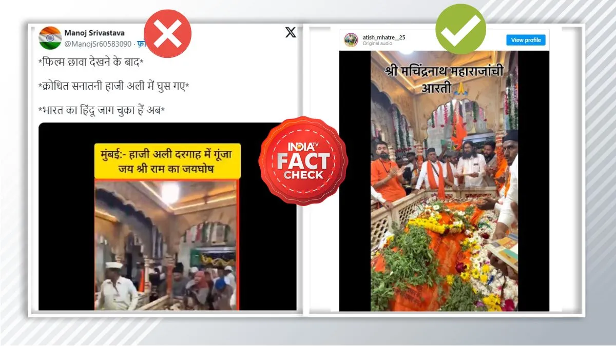Fact Check: इन दिनों सोशल मीडिया पर किसी भी बात को गलत दावे के साथ पेश करना बहुत ही आसान है। हालांकि इसका बहुत ज्यादा नुकसान भी होता है और ये खतरनाक है। फेक खबरें सोशल मीडिया पर तेजी से वायरल हो जाती हैं। इन्हीं फेक न्यूज से आपको सावधान करने के लिए हम लेकर आते हैं India TV फैक्ट चेक। सोशल मीडिया पर इन दिनों एक पोस्ट काफी तेजी से वायरल हो रही है, जिसमें यह दावा किया जा रहा है कि कुछ लोग मुंबई की हाजी अली दरगाह में जय श्री राम के नारे लगा रहे हैं। ये पोस्ट सोशल मीडिया पर तेजी से वायरल हो रही है।