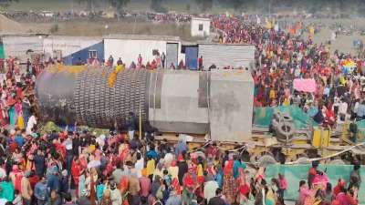 Image Source : Reporter Inputविश्व का सबसे बड़ा शिवलिंग अब बिहार के पुर्वी चम्पारण जिले के केसरिया प्रखंड स्थित कैथवलिया बिराट रामायण मंदिर परिषर में पिछले 6 दिनों से 96 चक्का ट्रक पर ही रखा है। इसको लेकर जिले के लोगों का इंतजार अब खुशियों के साथ पूजा अर्चना की भीड़ जुट रही। महिला पुरुष आस्था के प्रति 1008 शिवलिंग निर्मित 210 मीट्रिक टन का खूब पूजा अर्चना कर रहे हैं। भीड़ को देखते हुए पुलिस सुरक्षा व्यवस्था में जुट गई है।