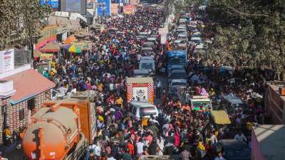 PHOTOS: जाम के झाम में फंसे महाकुंभ जा रहे श्रद्धालु, कई किलोमीटर तक गाड़ियों की लगी कतार; तस्वीरों में देखें