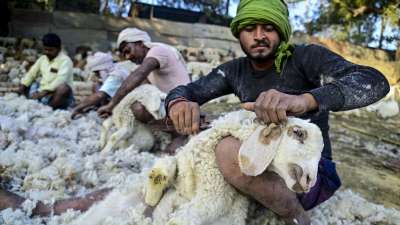 Image Source : PTIभेड़ें हमें सिर्फ ऊन ही नहीं देतीं, बल्कि ये बहुत ही चतुर, भावुक और रोचक जानवर हैं। हजारों सालों से इंसानों के साथ रह रही भेड़ें झुंड में रहना पसंद करती हैं और इनमें कई ऐसी खास बातें हैं जो आपको हैरान कर देंगी। आज हम आपको प्रयागराज से आई कुछ तस्वीरें दिखाएंगे जिनमें भेड़ों से देसी तरीके से ऊन निकाला जा रहा है, और साथ ही इनके बारे में कुछ दिलचस्प बातें भी बताएंगे। तो आइए देखते हैं भेड़ों की और उनसे ऊन निकाले जाने की कुछ शानदार तस्वीरें: