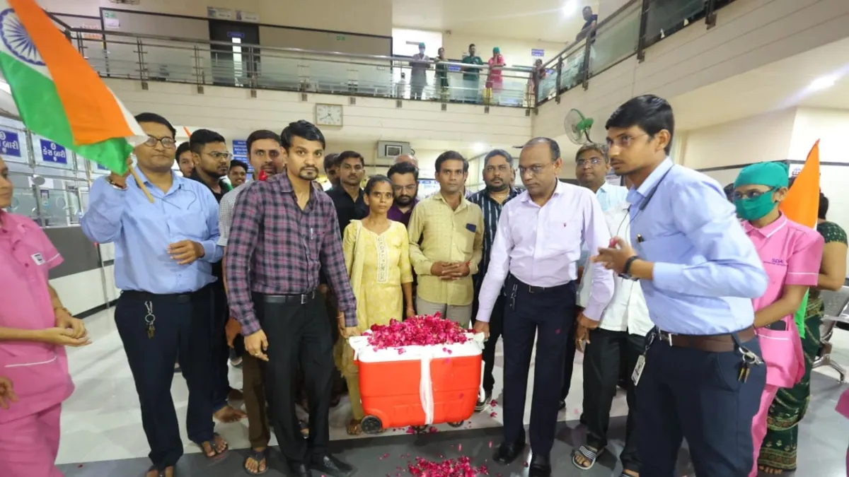 गुजरात के सूरत में एक छह दिन की बच्ची मौत के बाद भी अमर हो गई। अंगदान महादान के नारे को चरितार्थ कर समाज को नई दिशा दिखाई है। परिजनों ने बच्ची के अंगो को दान कर 4 लोगो की जिंदगी रोशन कर दिया है। बच्ची के अंगो ने चार लोगों की जिंदगी बचा ली है। अंगदान महादान के नारे को हकीकत का रूप देकर समाज को नई दिशा दिखाई है। अहमदाबाद के 10 वर्षीय बच्चे में बच्ची की दोनों किडनी और सूरत के 14 माह के बच्चे में लिवर ट्रांसप्लांट किया गया।
