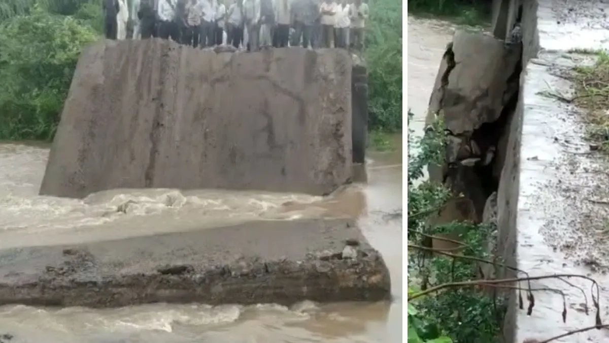 भारी बारिश की वजह से जूनागढ़ जिले के केशोद में बामसना के पास सड़क पर बना एक पुल टूट गया और पानी का बहाव इतना तेज था कि पुल के नीचे बने खंभे और एप्रोच पर लगी मिट्टी को अपने साथ बहाकर ले गया।