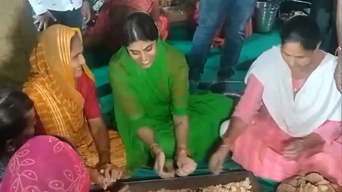 जामनगर: देशभर में गणेश उत्सव की धूम है और गणेश पंडालों में भक्तों की भारी भीड़ दिखाई दे रही है। इस बीच गुजरात से बीजेपी विधायक रिवाबा जडेजा का एक वीडियो सामने आया है, जिसमें वह अपने निर्वाचन क्षेत्र जामनगर उत्तर में भगवान गणेश के पंडाल में लड्डू बनाती हुई दिख रही हैं। गौरतलब है कि रिवाबा जडेजा, क्रिकेटर रवींद्र जडेजा की पत्नी हैं।
