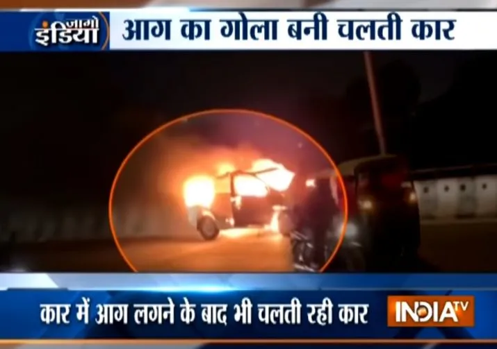 वायरल वीडियो: देखें, गुरुग्राम में आग का गोला बनी कार, ड्राइवर ने कूदकर बचाई जान
