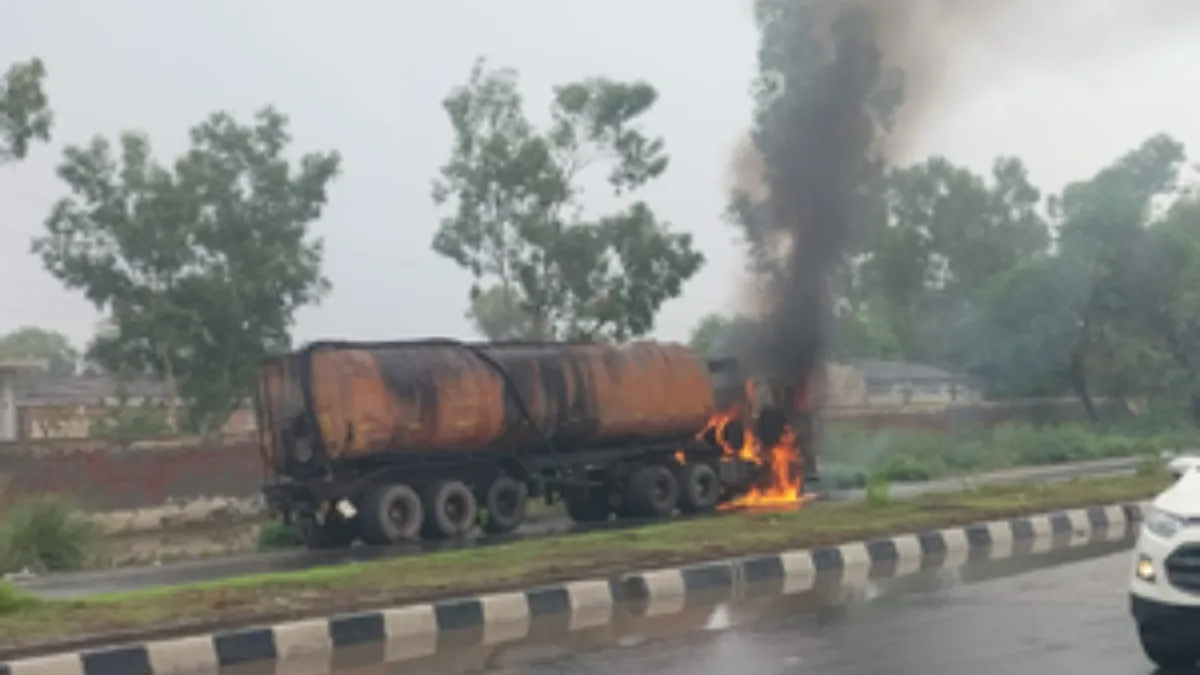हिसार कैंट के पास तेल टैंकर में लगी आग, ड्राइवर ने कूदकर बचाई जान