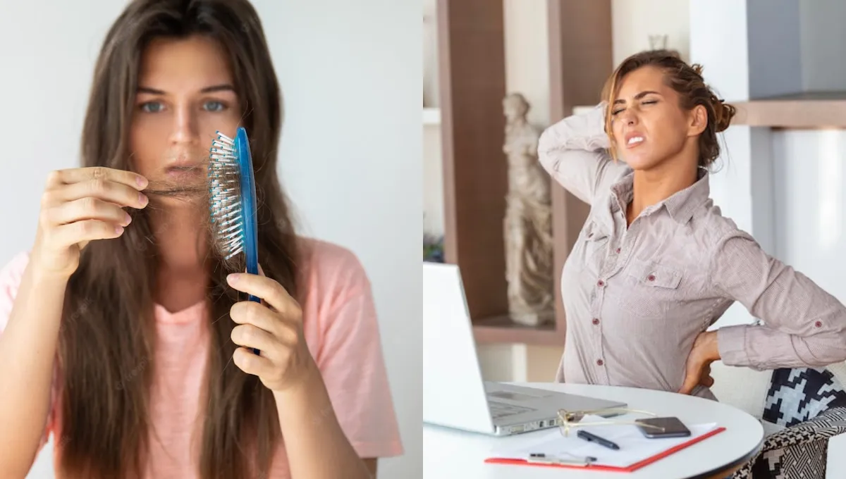 - बालों का गिरना: बालों का रफ होना, झड़ना और डैंड्रफ होना भी विटामिन डी की कमी का आम लक्षण है। ऐसा इसलिए क्योंकि यही वो न्यूट्रिएंट है जो हेयर फॉलिकल्स को बढ़ने में मदद करता है।