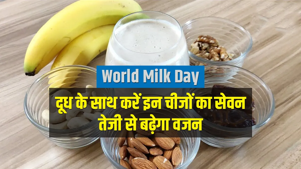 आज वर्ल्ड मिल्क डे है। संयुक्त राष्ट्र के खाद्य और कृषि संगठन ने साल 2001 में 1 जून को वर्ल्ड मिल्क डे मनाने के लिए चुना, इस दिन डेयरी क्षेत्र के आर्थिक विकास और पोषण के बारे में बात की जाती है और लोगों को दूध को लेकर जागरूक किया जाता है। आज हम आपको दूध के कुछ ऐसे फायदे बताने वाले हैं जिसकी मदद से आप आसानी से अपना वजन बढ़ा सकते हैं। जहां एक तरफ दुनिया की बड़ी आबादी अपने बढ़ते वजन से परेशान है वहीं कई लोग ऐसे भी हैं जिनका वजन नहीं बढ़ता है और वो अपना वेट बढ़ाने के लिए परेशान होते हैं। हम आपको कुछ ऐसे उपाय बताने वाले हैं जिसकी मदद से आप घर पर अपना वजन बढ़ा सकते हैं।