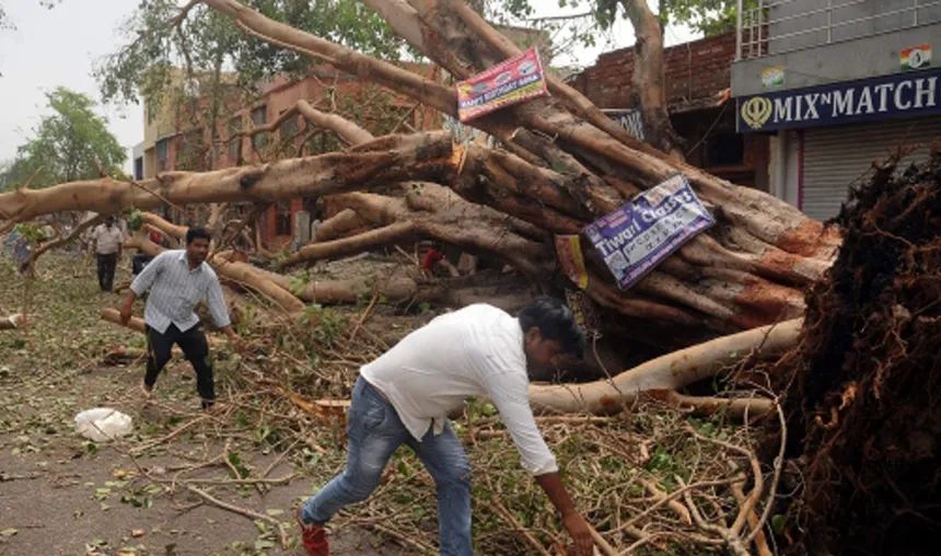 नई दिल्ली: मई के महीने में भी मौसम का टॉर्चर जारी है। बुधवार को भी देश के कई इलाकों में वेस्टर्न डिस्टर्बेंस की वजह से जमकर आंधी, तूफान, बारिश और ओले गिरे। देश के कई हिस्सों में बेमौसम तूफान ने जमकर तबाही मचाई लेकिन बेरहम मौसम की सबसे ज्यादा मार पड़ी उत्तर प्रदेश के जिलों में। पिछले दस दिनों में ऐसा तीसरी बार है जब आंधी तूफान ने प्रदेश में तबाही और बर्बादी मचाई है। कल आए आंधी तूफान में प्रदेश में कुल ग्यारह लोगों के मौत की खबर है। मौसम विभाग के मुताबिक ये ख़तरा अभी टला नहीं है।