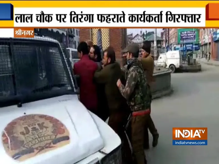 जम्मू कश्मीर की राजधानी श्रीनगर के व्यस्त लाल चौक पर आज सुबह पंजाब से आए अकाली दल कार्यकर्ता को पुलिस ने हिरासत में ले लिया। यह कार्यकर्ता लाल चौक पर तिरंगा फहराने की कोशिश कर रहा था। जैसे ही कार्यकर्ता लाल चौक स्थित घंटा घर पर तिरंगा फहराने पहुंचा वहां मौजूद सुरक्षा बलों ने उसे हिरासत में ले लिया। यह कार्यकर्ता पुलवामा हमले में शहीद हुए सुरक्षाबल के जवानों को श्रद्धांजलि देने के लिए यहां पहुंचा था।