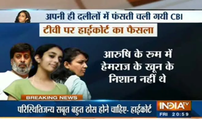 हाईकोर्ट ने कहा...इस थ्योरी पर कौन भरोसा करेगा...कोई सबूत नहीं है। कोई गवाह नहीं हैं....कोई परिस्थितिजन्य साक्ष्य नहीं हैं। अगर हेमराज को आरूषि के कमरे में मारा गया तो उसके खून के निशान उस कमरे से क्यों नहीं मिले? फोरेंसिक रिपोर्ट में साफ कहा गया है कि कमरे में आरूषि का खून तो मिला लेकिन किसी बेडशीट पर या कमरे की दीवार पर हेमराज के खून के निशान नहीं मिले। सीएफएसएल दिल्ली की रिपोर्ट में कहा गया है कि आरुषि के तकिये, बेडशीट और गद्दे की जांच में हेमराज का कोई डीएनए या ब्लड नहीं पाया गया था। जबकि सीडीएफडी, हैदराबाद के डीएनए एक्सपर्ट ने बताया कि कमरे से सिर्फ आरुषि का ही डीएनए मिला था। इन रिपोर्ट्स को हाईकोर्ट ने एक्सेप्ट किया। अगर हेमराज की लाश को सीढ़ियों से घसीट कर छत पर ले जाया गया तो सीढियों पर खून के निशान होने चाहिए थे वो भी नहीं मिले।