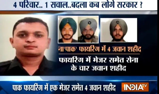 एक रक्षा प्रवक्ता ने बताया कि पाकिस्तानी सैनिकों ने दोपहर करीब सवा बारह बजे केरी सेक्टर के ब्रात गल्ला में थल सेना की एक गश्ती दल को निशाना बनाया। प्रवक्ता ने बताया कि मेजर मोहरकर प्रफुल्ल अंबादास, लांस नायक गुरमैल सिंह, लांस नायक गुरमीत सिंह और सिपाही परगट सिंह संघर्ष विराम उल्लंघन के दौरान अपनी जान गंवा बैठे। रक्षा सूत्रों ने बताया कि थल सेना के चार कर्मी बगैर उकसावे की गई गोलीबारी में शहीद हो गए। इसबीच, थल सेना ने एक बयान में कहा कि भारतीय सैनिकों ने मुंहतोड़ जवाब दिया है।
