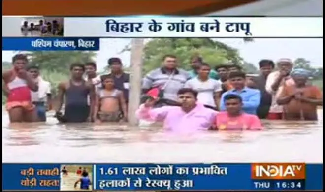 पश्चिम चंपारण: नेपाल की सीमा से लगे बिहार इस उत्तरी जिले में सैलाब का कहर टूटा है। सैलाब के विकराल रुप के आगे न इंसानों का बस है और न सरकार का और न इंसानों की बनाई मशीनों का । पिछले पांच दिनों से पूर्वी चंपारण और पिश्चमी चंपारण की सीमा पर सैलाब ने ऐसा साम्राज्य कायम किया है कि घर खेत, सड़के सबकुछ पानी में समा चुकी हैं। ऐसा लग रहा है जैसे नदी के बीच किसी शहर को बसाने की कोशिश की गई हो। पानी के बीच आधे डूबे हुए घर और सड़कों की पहचान बतानेवाले बोर्ड को देखकर ही जाहिर होता है कि ये कोई रिहायशी इलाका है ।
