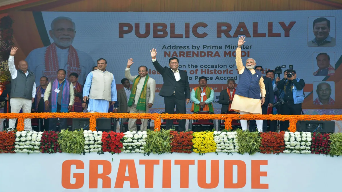 प्रधानमंत्री ने कहा, ‘‘झूठी अफवाहें फैलाई जा रही है कि सीएए लागू होने के बाद बाहर के लाखों लोग यहां आ जाएंगे। मैं असम के लोगों को आश्वस्त करता हूं कि ऐसा कुछ भी नहीं होगा।’’ उन्होंने कहा कि 1993 और 2003 में हुए बोडो समझौते असम के बोडो वर्चस्व वाले इलाकों में स्थायी शांति नहीं ला पाए थे। मोदी ने कहा, ‘‘नया बोडो समझौता समाज के सभी समुदायों और वर्गों की जीत है। कोई भी हारा नहीं है। इस समझौते पर हस्ताक्षर के बाद अब कोई मांग नहीं बची है।’’ सरकार ने असम के सबसे खतरनाक उग्रवादी समूहों में से एक नेशनल डेमोक्रेटिक फ्रंट ऑफ बोडोलैंड (एनडीएफबी) के सभी धड़ों, ऑल बोडो स्टूडेंट्स यूनियन (एबीएसयू), यूनाइटेड बोडो पीपुल्स ऑर्गनाइजेशन (यूबीपीओ) के साथ 27 जनवरी को एक समझौते पर हस्ताक्षर किए थे। इसके तहत उन्हें राजनीतिक एवं आर्थिक लाभ देने की बात कही गई थी, लेकिन अलग राज्य या केंद्र शासित प्रदेश बनाने की नहीं।