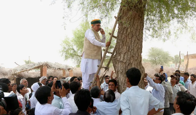 मंत्री जी को मोबाइल पर बात करने के लिए रविवार को राजस्थान के बीकानेर जिले में पेड़ पर सीढ़ी लगाकर चढ़ना पड़ा। मंत्री को ऐसा बीकानेर शहर से 85 किलोमीटर दूर धोलिया गांव में करना पड़ा।