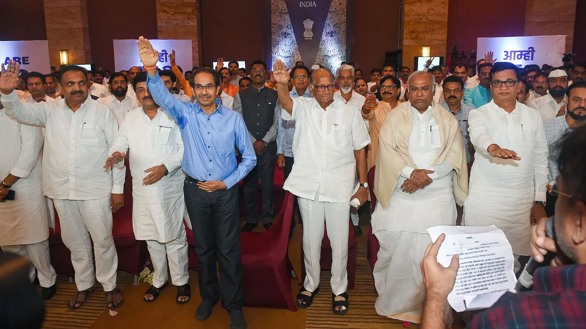 मुंबई: मुंबई के हयात होटल में इकट्ठा हुए सभी विधायकों को अपनी पार्टी प्रति ईमानदार रहने की शपथ दिलाई गई। इस दौरान वहां शरद पवार, मल्लिकार्जुन खड़गे, उद्धव ठाकरे, आदित्य ठाकरे, बालासाबेह थोराट, प्रफुल पटेल, पृथ्विराज चव्हाण, अशोक चव्हाण मौजूद रहे। इन सभी की मौजूदगी में विधायकों ने अपनी-अपनी पार्टी के लिए ईमानदार रहने और किसी भी चीज़ का लालच नहीं करने की शपथ ली।