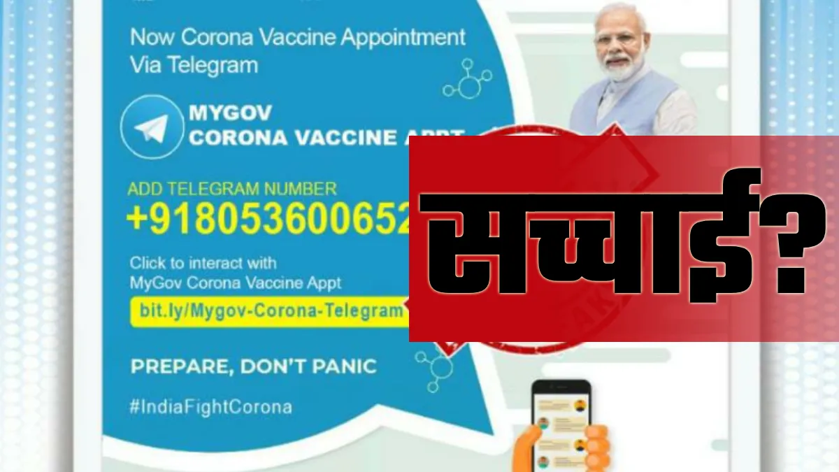 लेकिन, ऐसे में वैक्सीनेशन से जुड़ा एक दावा वायरल हो रहा है, जिनमें कहा जा रहा है कि 'MyGov Corona Vaccine Appt' के उपयोग से टेलीग्राम पर भी COVID-19 टीकाकरण के लिए अपॉइंटमेंट बुक किया जा सकता है। केंद्र सरकार की एजेंसी प्रेस इनफॉर्मेशन ब्यूरो (PIB) की फैक्ट चेक विंग ने जब इस दावे की पड़ताल की, तो इसे गलत पाया।
