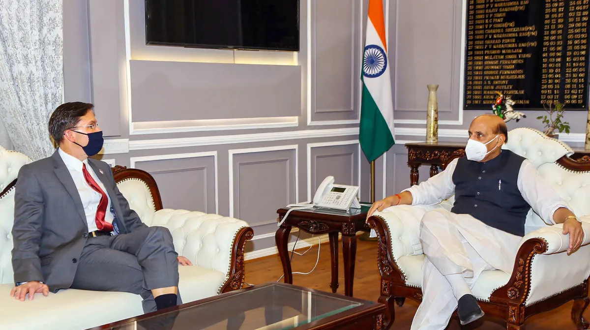 नयी दिल्ली: रक्षा मंत्री राजनाथ सिंह और उनके अमेरिकी समकक्ष मार्क टी एस्पर ने सोमवार को विभिन्न मुद्दों पर व्यापक चर्चा की। उन्होंने दोनों देशों के बीच सैन्य सहयोग को और बढ़ाने के तरीकों के अलावा तेजी से बढ़ते रक्षा तथा सामरिक संबंधों से जुड़े विभिन्न पहलुओं पर भी चर्चा की। अमेरिकी विदेश मंत्री माइक पोम्पिओ और रक्षा मंत्री एस्पर तीसरी ‘टू प्लस टू’ मंत्री स्तरीय बैठक के लिए सोमवार को यहां पहुंचे।
