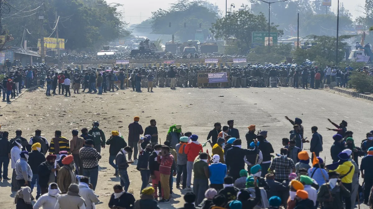केन्द्र के तीन नए कृषि कानूनों के खिलाफ ‘दिल्ली चलो’ मार्च के तहत सिंघु बॉर्डर पर पहुंचे किसानों के एक समूह को तितर-बितर करने के लिए दिल्ली पुलिस ने शुक्रवार को आंसू गैस के गोले दोगे।