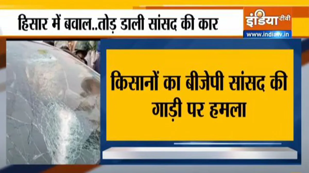 हिसार: हरियाणा के हिसार में शुक्रवार को किसानों ने राज्यसभा सांसद रामचंद्र जांगड़ा पर हमला कर दिया। इस हमले में किसानों ने सांसद की गाड़ी का शीशा तोड़ दिया। रामचंद्र जांगड़ा नारनौंद में विश्वकर्मा समाज की एक धर्मशाला का शिलान्यास करने गए थे। पुलिस ने हालात पर काबू पाने के लिए किसानों पर लाठीचार्ज कर दिया। लाठीचार्ज में कई किसानों के घायल होने की खबर है। पुलिस ने कार्रवाई करते हुए कई किसानों को हिरासत में भी लिया है।