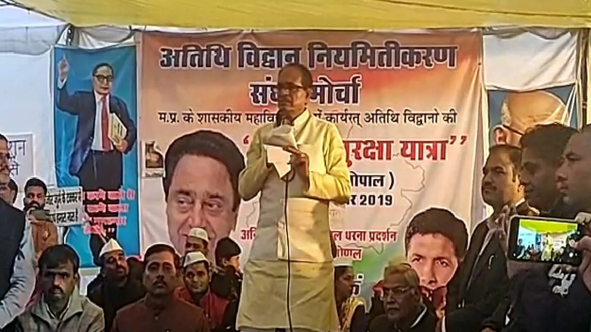भोपाल। मध्य प्रदेश में एमपी पीएससी से चयनित सहायक प्राध्यापकों के बाद अब प्रदेश भर के अतिथि विद्वानों ने सरकार के खिलाफ राजधानी भोपाल में मोर्चा खोल रखा है। विधानसभा चुनाव के दौरान 90 दिन में 4 से 5000 अतिथि विद्वानों को नियमित करने का वादा करने वाली कांग्रेस सरकार को उसका वादा याद दिलाने के लिए यह अतिथि विद्वान राजधानी भोपाल के शाहजहानी पार्क में एकत्रित हुए थे।