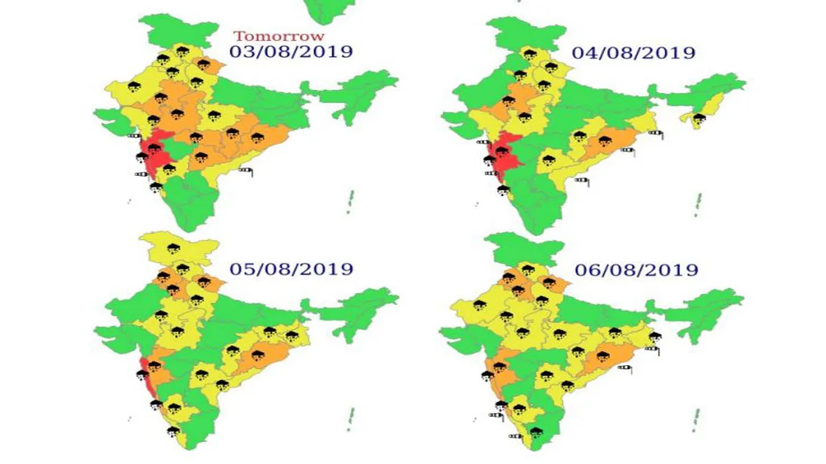 नई दिल्ली। मौसम विभाग ने अगले 4 दिन दिल्ली सहित उत्तर भारत के अधिकतर राज्यों में भारी बरसात का अलर्ट जारी किया है। 3 अगस्त से लेकर 5 अगस्त तक दिल्ली, पंजाब, हरियाणा, उत्तराखंड, पश्चिमी उत्तर प्रदेश और राजस्थान में भारी बरसात हो सकती है। इसके अलावा तटीय और मध्य महाराष्ट्र में बहुत भारी बरसात की चेतावनी है, तटीय और मध्य महाराष्ट्र में 4 अगस्त के लिए रेड अलर्ट जारी किया गया है।