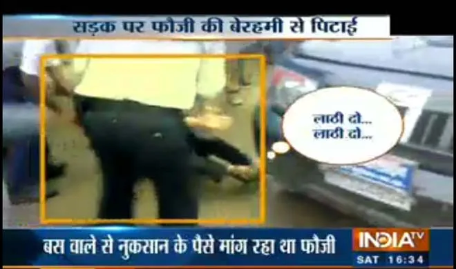 नई दिल्ली: मध्य प्रदेश के मुरैना में पुलिसवालों ने एक फौजी की पिटाई कर दी। भीड़ से भरी सड़क पर पुलिसवालों ने फौजी को सड़क पर गिराकर डंडे से मारा और फिर उसे थाने ले गए। पुलिस की पिटाई का ये वीडियो वहां खड़े कई लोगों ने अपने मोबाइल में कैद कर लिया। अब ये वीडियो वायरल हो रहा है और पुलिस अफसरों ने इस घटना पर चुप्पी साध ली है