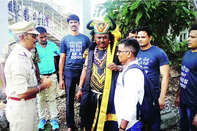 यही वजह है कि यमराज को धरती पर आना पड़ा है जो अब इस तरह की हरकतें करने वाले लोगों को समझा रहे हैं कि ऐसा न करें, इससे उनका काम बेवजह बढ़ जाता है। दरअसल यमराज के कॉस्ट्यूम में कुर्ला में तैनात आरपीएफ के जवान रमेश माने हैं जो यात्रियों के अंदर जागरूकता फैलाने के लिए यमराज के रूप में कुर्ला के रेलवे स्टेशन पर घूम रहे हैं। घूम-घूमकर ये लोगों को पटरी पार न करने की हिदायत दे रहे हैं। बाबजूद इसके कोई अगर पटरी पार करते दिखाई देता है तो उसे दौड़ा-दौड़ा कर पकड़ लिया जाता है।