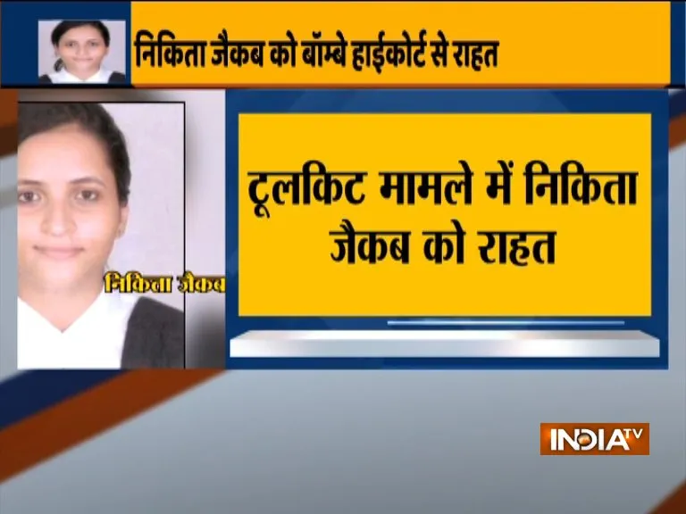 मुंबई: टूलकिट केस की आरोपी निकिता जैकब को बॉम्बे हाईकोर्ट से तीन हफ्ते की राहत मिल गई है। यानि पुलिस अब उसे अगले 3 हफ्ते तक गिरफ्तार नहीं कर पाएगी। बॉम्बे हाईकोर्ट ने आज निकिता की तरफ से दायर अर्जी पर सुनवाई करते हुए उसे अंतरिम राहत दे दी है। जानकारी के मुताबिक गिरफ्तारी से बचने के लिए यह अंतरिम राहत भी उसे कुछ शर्तों के साथ मिली है।