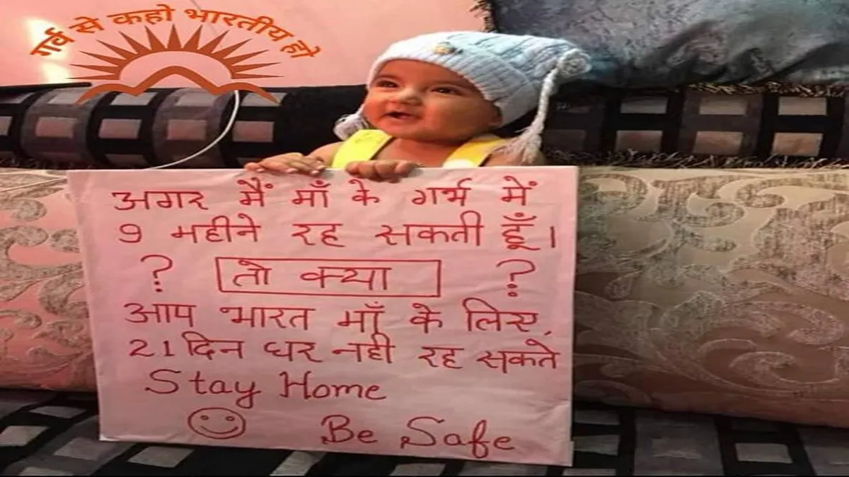 पीएम मोदी ने जो तस्वीर साझा की है उसमें एक छोटी बच्ची ने अपने दोनों हाथों से एक प्लेकार्ड उठाया हुआ है जिस पर लिखा हुआ है 'अगर मैं मां के गर्भ में 9 महीने रह सकती हूं तो क्या? आप भारत मां के लिए 21 दिन घर पर नहीं रह सकते' Stay Home, Be Safe.