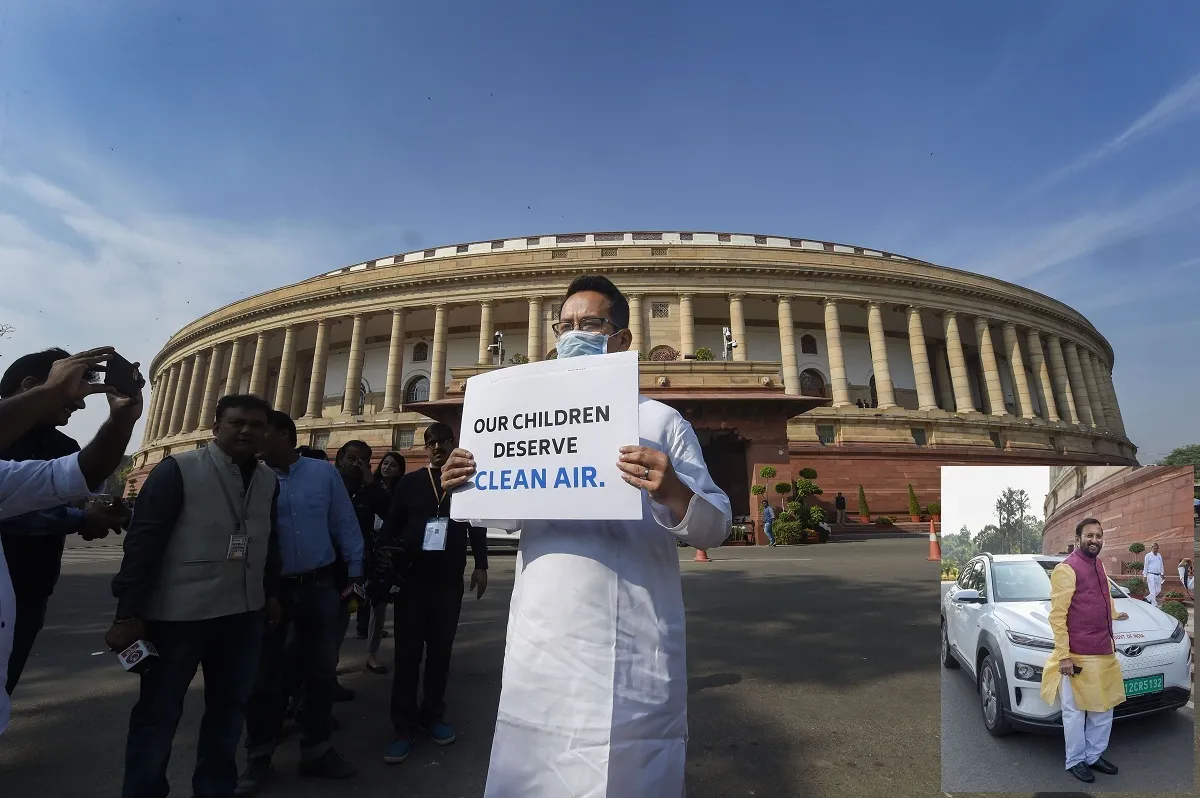 कांग्रेस सांसद गौरव गोगोई ने संसद भवन परिसर में स्थापित महात्मा गांधी की प्रतिमा के सामने प्रदूषण के विरोध स्वरूप मास्क पहना। उनका विरोध वायु प्रदूषण के स्तर में वृद्धि को लेकर था। भाजपा सांसद मनसुख मंडाविया साइकिल से संसद पहुंचे। इसी तरह उनके पार्टी सहयोगी मनोज तिवारी भी साइकिल से संसद आए।