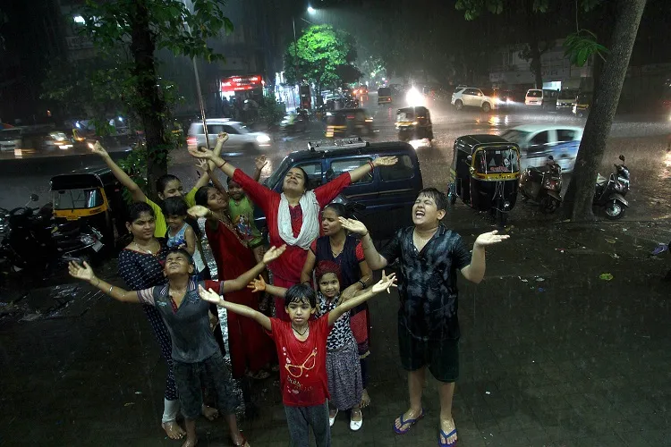 सोमवार को बारिश ने मुंबई में लोगों को गर्मी से राहत दी। बारिश होते ही लोग सड़क निकल आए और मस्ती करते नजर आए।