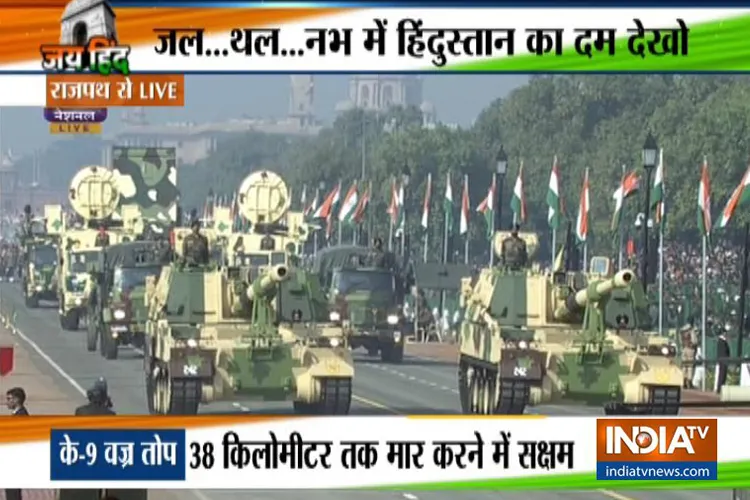 नई दिल्ली: 70वें गणतंत्र दिवस के मौके पर दिल्ली के राजपथ पर एक ओर देश की सशस्त्र सेनाओं की ताकत दिखी तो दूसरी ओर देश के अलग-अलग हिस्सों की कला-संस्कृति की खूबसूरत तस्वीर देखने को मिली। राष्ट्रपति रामनाथ कोविंद ने परेड की सलामी ली। इस बार सेना में शामिल किए गए नए हथियारों के अलावा महिला अर्द्धसैनिक बल द्वारा पहली बार मार्च किया गया। इसके अलावा पुरुष टीमों का नेतृत्व भी महिला ऑफिसरों ने ही किया। बोफोर्स के आने के 30 साल बाद पहली बार सेना एम777 और के9 वज्र का प्रदर्शन गणतंत्र दिवस परेड में किया गया।