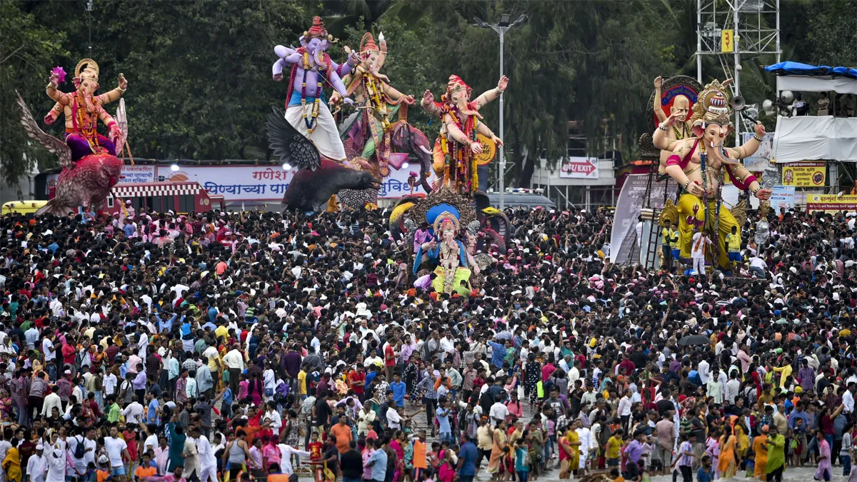 मुंबई पुलिस ने प्रतिमा विसर्जन से पहले ट्वीट किया, ‘हम अपने प्रिय भगवान गणेश को विदा करने को तैयार हैं ऐसे में हम आप सबसे एक सुरक्षित और शांतिपूर्ण गणेश विसर्जन सुनिश्चित करने का अनुरोध करते हैं।’ एक वरिष्ठ पुलिस अधिकारी ने कहा, ‘पिछले कुछ बरसों में शहर में पुल ढहने की घटनाओं के मद्देनजर हमने कमजोर पुलों को बंद करने का फैसला किया। मुंबई में यातायात के लिए आज कम से कम 53 सड़कों को बंद रखा गया।’ पुणे के पांच प्रमुख मंडलों--कस्बा गणपति, तम्बादी जोगेश्वरी मंडल, गुरजी तालिम मंडल, तुलसी बाग मंडल और केसरीवाडा मंडल में श्रद्धालुओं ने झांकियां निकालीं।