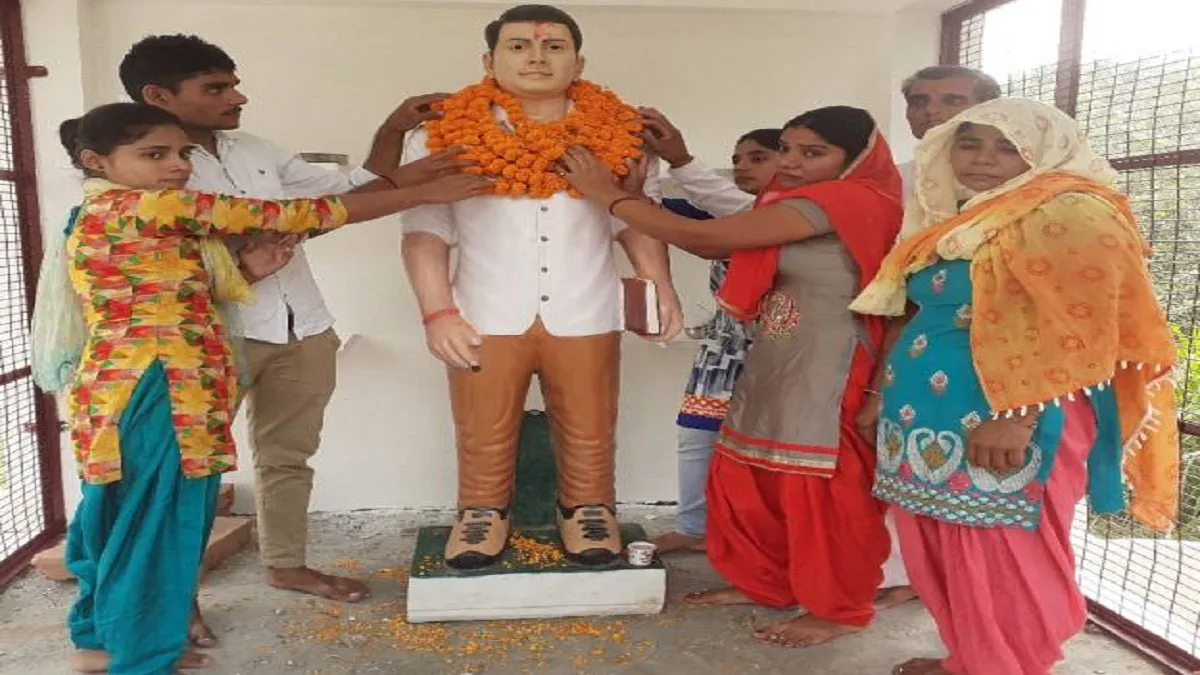 बुलंदशहर। उत्तर प्रदेश के बुलंदशहर में पिछले साल हुए दंगे में मारे गए दंगा आरोपी सुमित के परिजनों ने गांव में उसकी प्रतिमा स्थापित की है। पहले यह प्रतिमा तीन दिसंबर को सुमित की पहली बरसी पर स्थापित होने वाली थी। इसके साथ रखी गई पट्टिका में उसे 'गौ रक्षक वीर शहीद' कहा गया है।
