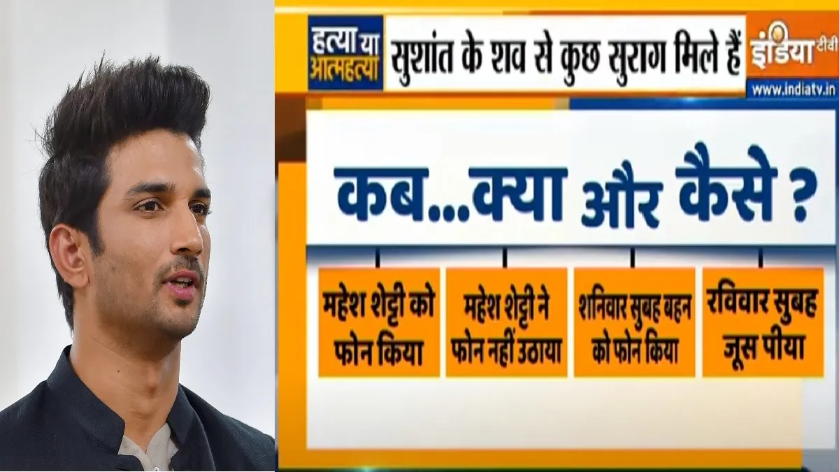 सुबह 9:30 बजे सुशांत ने अनार का जूस लिया और अपने कमरे में खुद को बंद कर लिया। 10:30 बजे कुक ने सुशांत से दोपहर के लंच के लिए क्या खाने के बारे में पुछने की लिए दरवाजा खटखटाया तो उन्होने नहीं खोला। कुक दोबारा 12 बजे के करीब सुशांत के पास लंच के बारे में पूछने के लिए गया। इस बारे भी सुशांत ने दरवाजा नहीं खोला। जिसके बाद उन्होंने सुशांत को फोन लगाया, लेकिन फिर भी कोई जवाब नहीं दिया। जिलेक बाद कुक समेत दो अन्य व्यक्ति, जिसमे एक सर्वेंट है वो घबरा गए।